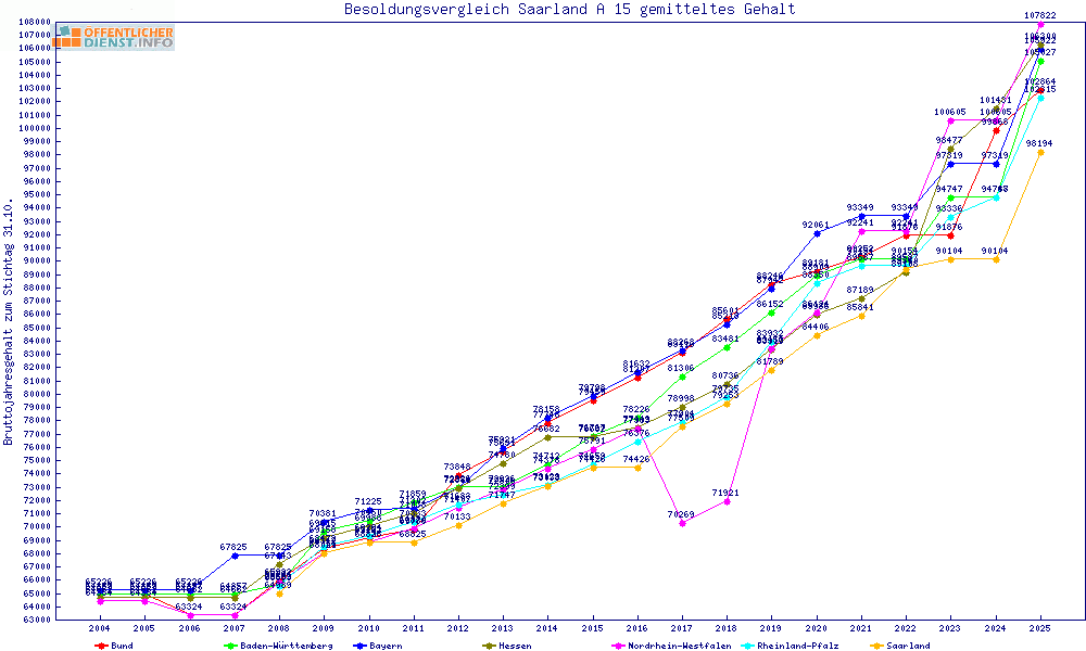 | Besoldungsvergleich A 15 im Jahr 2025 | gemitteltes Gehalt | ||||||