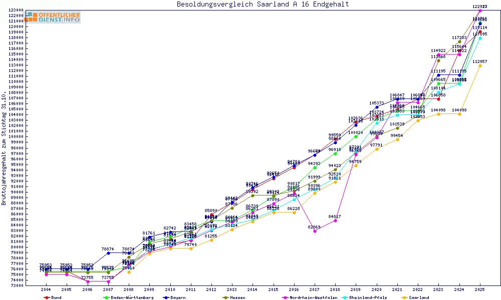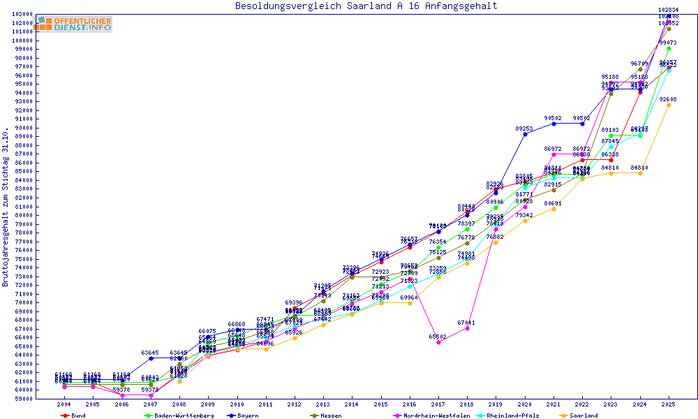 | Besoldungsvergleich A 16 im Jahr 2025 | Anfangsgehalt | ||||||
