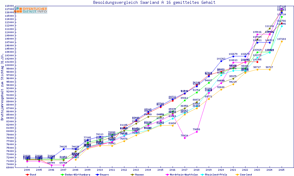 | Besoldungsvergleich A 16 im Jahr 2025 | gemitteltes Gehalt | ||||||