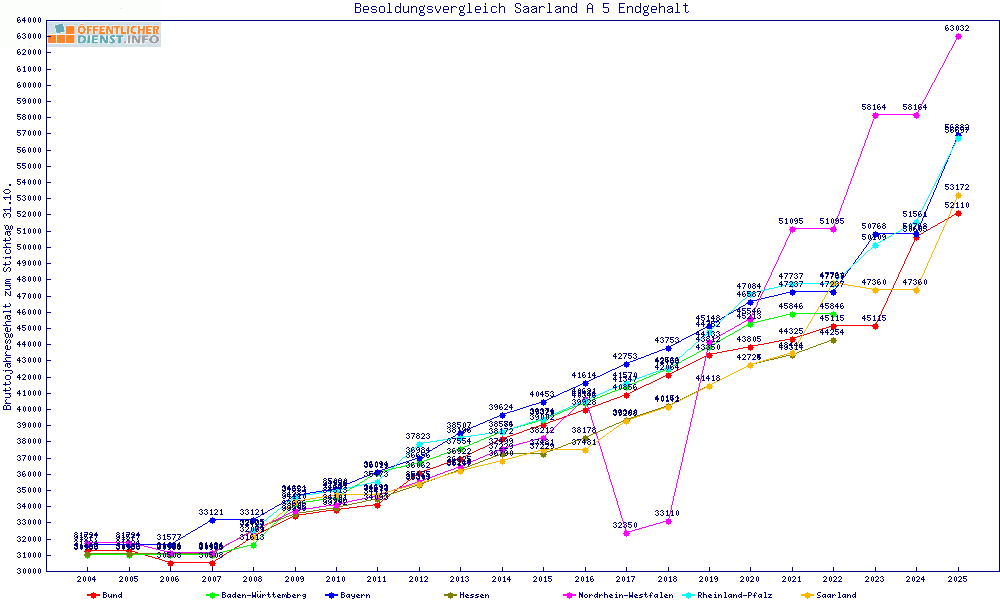 | Besoldungsvergleich A 5 im Jahr 2025 | Endgehalt | |||||||