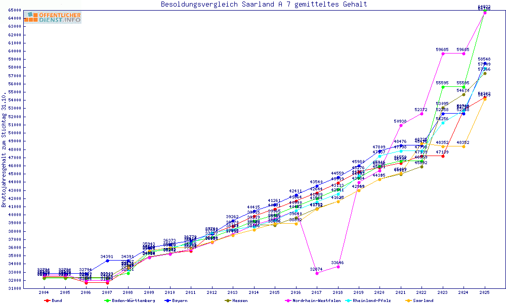 | Besoldungsvergleich A 7 im Jahr 2025 | gemitteltes Gehalt | ||||||