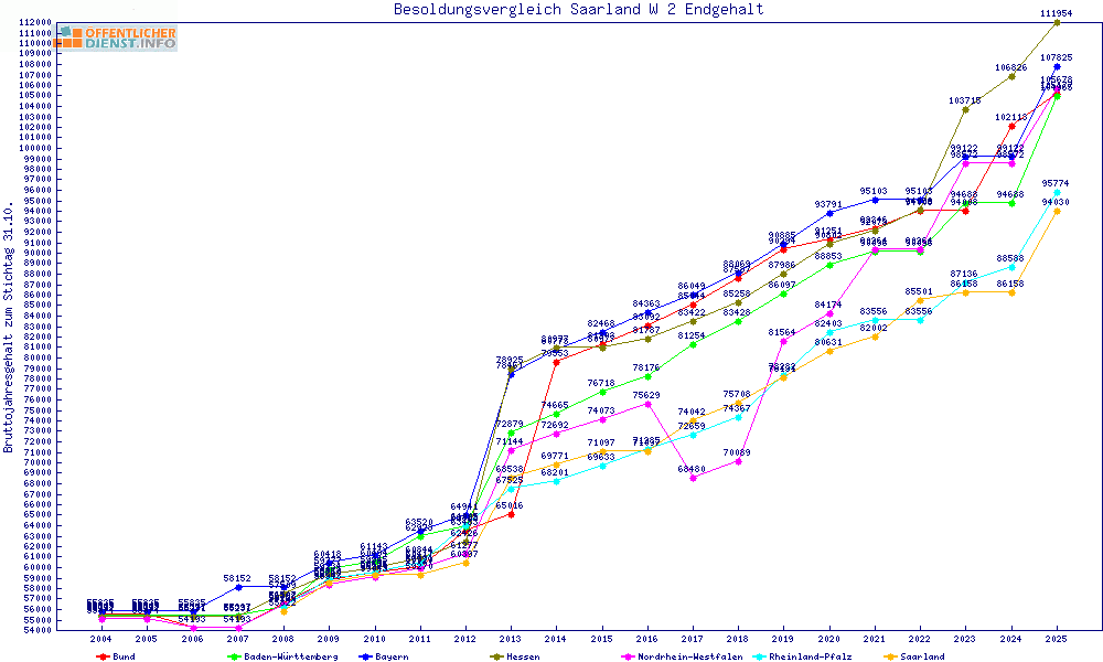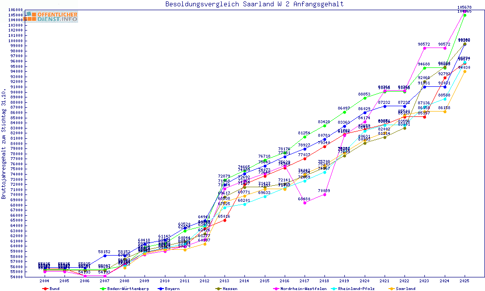 | Besoldungsvergleich W 2 im Jahr 2025 | Anfangsgehalt | ||||||