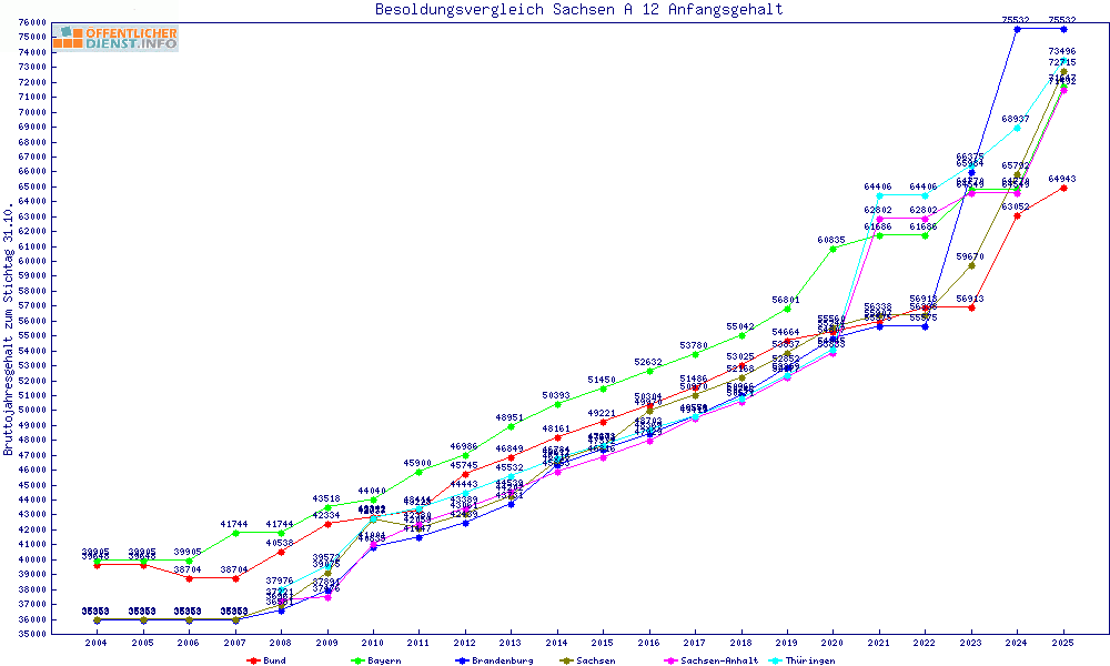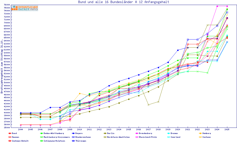 | Besoldungsvergleich A 12 im Jahr 2025 | Anfangsgehalt | ||||||