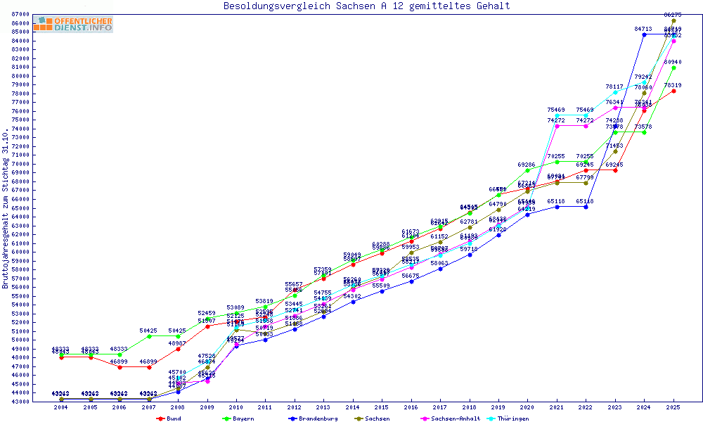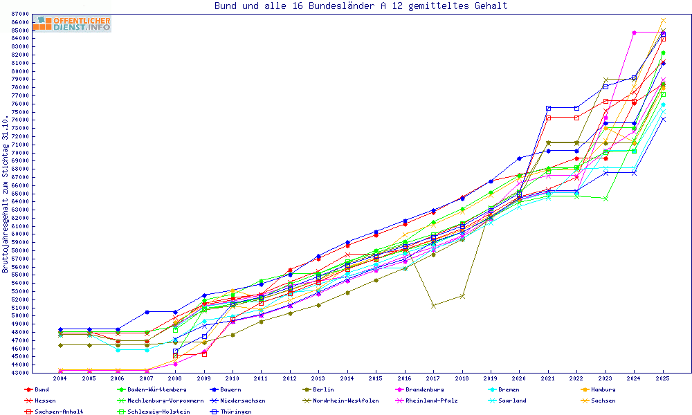 | Besoldungsvergleich A 12 im Jahr 2025 | gemitteltes Gehalt | ||||||