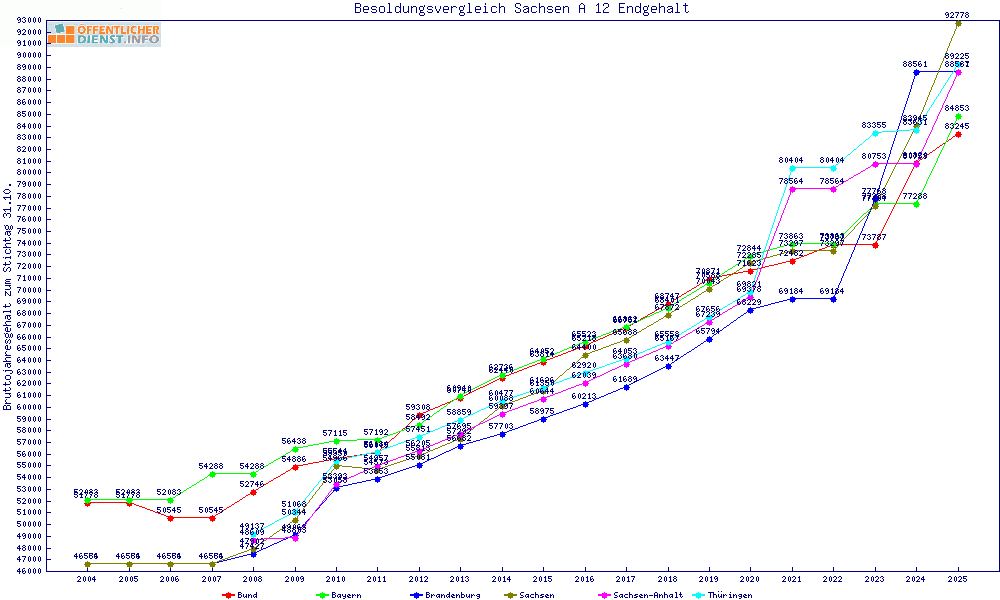| Sachsen | 92.778 € | +7990 € | +9.4% | 28 Jahre | ||||