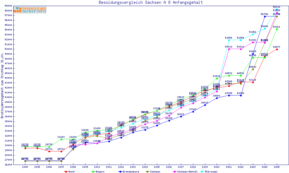| Besoldungsvergleich A 8 im Jahr 2025 | Anfangsgehalt | ||||||