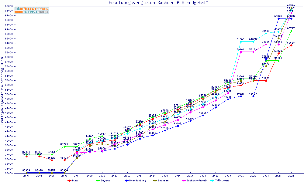 | Besoldungsvergleich A 8 im Jahr 2025 | Endgehalt | |||||||