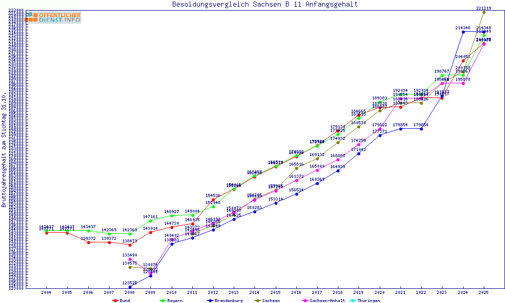 | Besoldungsvergleich B 11 im Jahr 2025 | Anfangsgehalt | ||||||