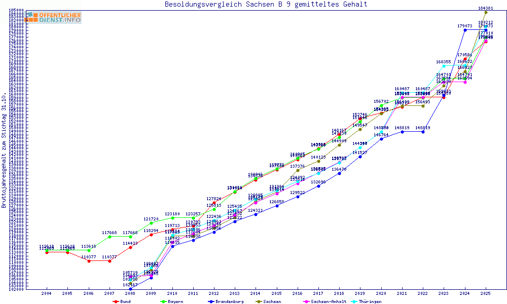 | Besoldungsvergleich B 9 im Jahr 2025 | gemitteltes Gehalt | ||||||