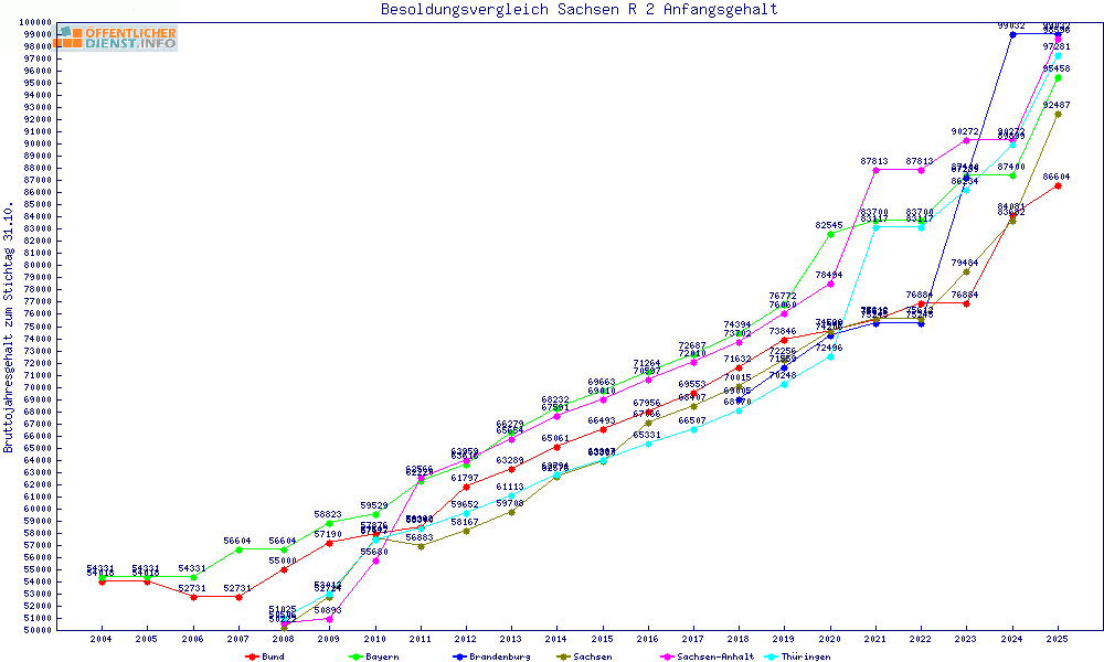 | Besoldungsvergleich R 2 im Jahr 2025 | Anfangsgehalt | ||||||