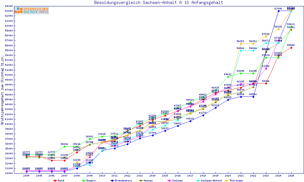 | Besoldungsvergleich A 10 im Jahr 2025 | Anfangsgehalt | ||||||