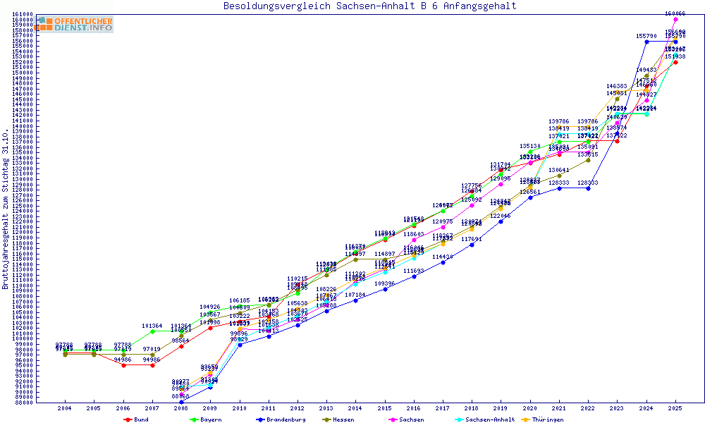 | Besoldungsvergleich B 6 im Jahr 2025 | Anfangsgehalt | ||||||