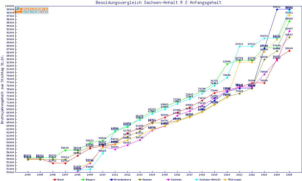 | Besoldungsvergleich R 2 im Jahr 2025 | Anfangsgehalt | ||||||