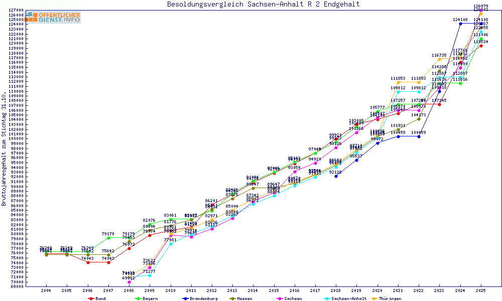 | Besoldungsvergleich R 2 im Jahr 2025 | Endgehalt | |||||||