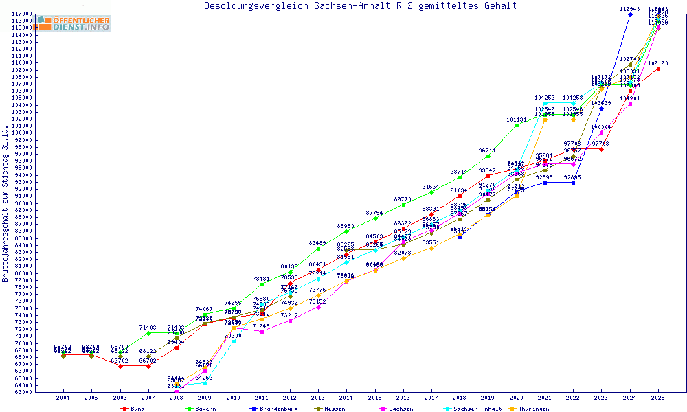 | Besoldungsvergleich R 2 im Jahr 2025 | gemitteltes Gehalt | ||||||