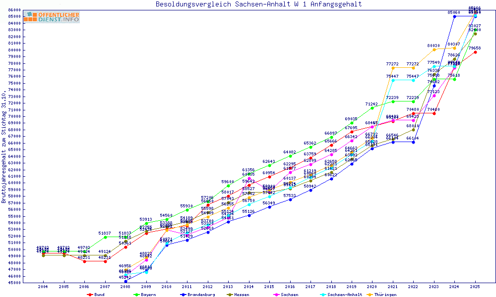 | Besoldungsvergleich W 1 im Jahr 2025 | Anfangsgehalt | ||||||