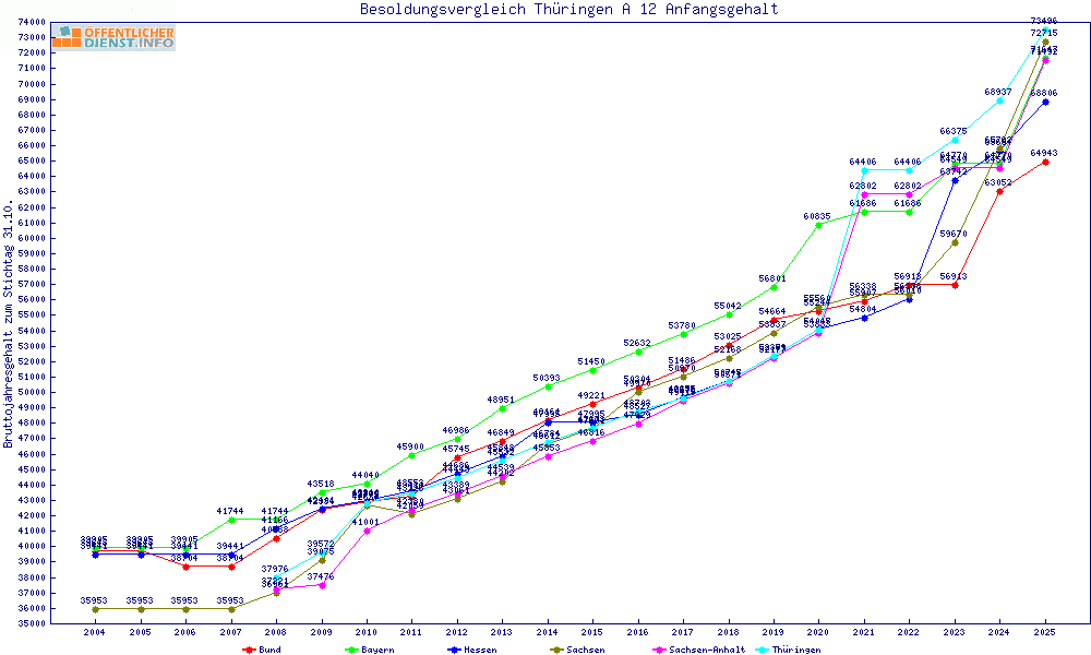 | Besoldungsvergleich A 12 im Jahr 2025 | Anfangsgehalt | ||||||
