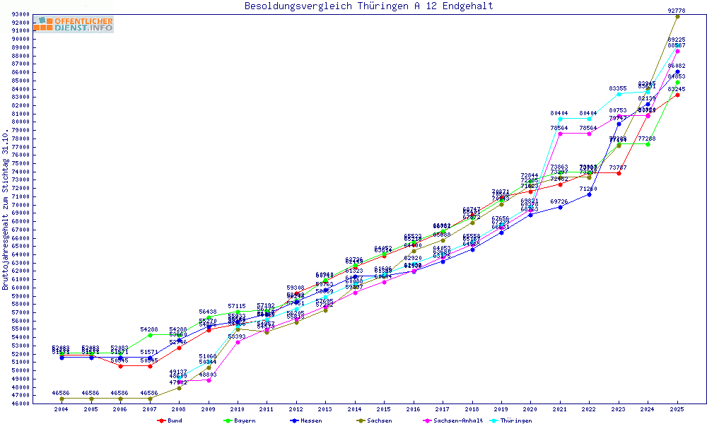 | Sachsen-Anhalt | 83.933 € | -594 € | -0.7% | +3759 € | +4.7% | ||