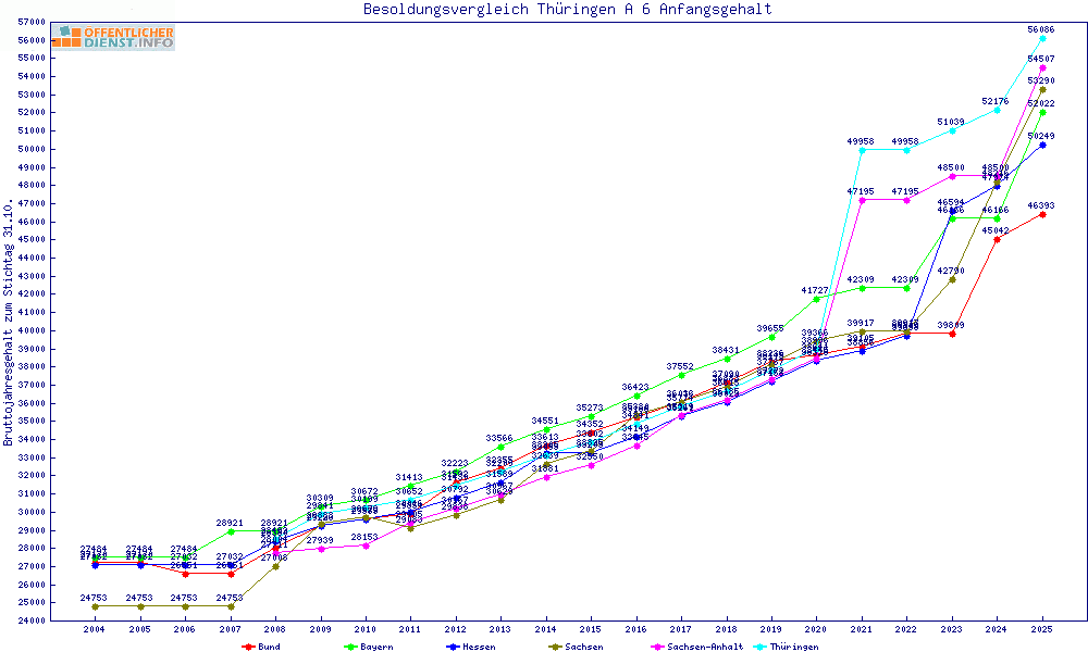 | Besoldungsvergleich A 6 im Jahr 2025 | Anfangsgehalt | ||||||