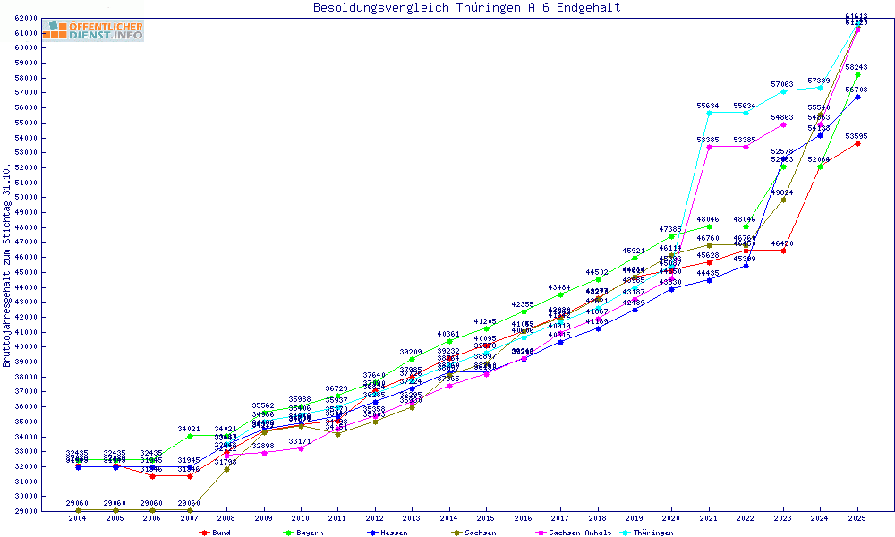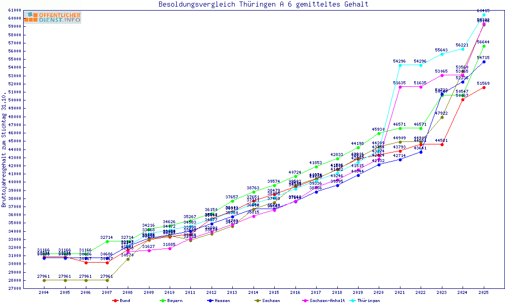 | Besoldungsvergleich A 6 im Jahr 2025 | gemitteltes Gehalt | ||||||