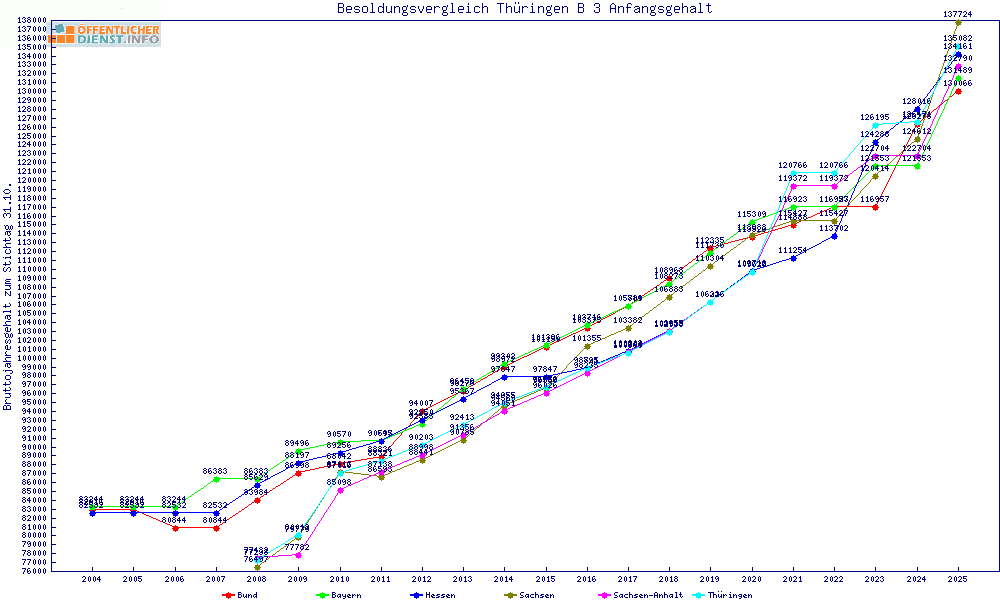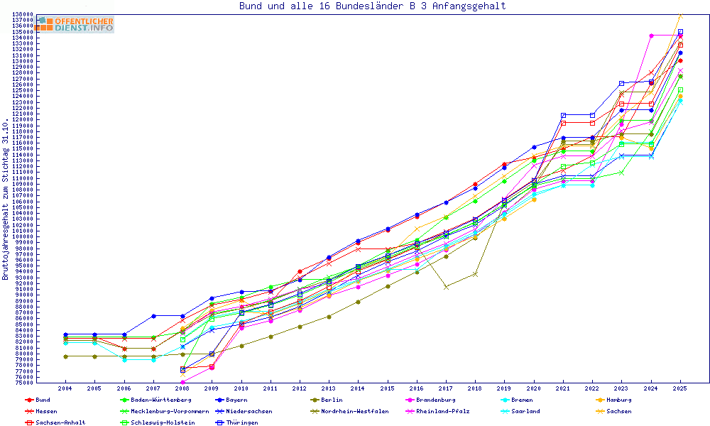 | Besoldungsvergleich B 3 im Jahr 2025 | Anfangsgehalt | ||||||