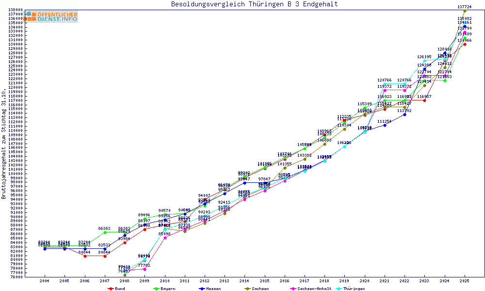 | Besoldungsvergleich B 3 im Jahr 2025 | gemitteltes Gehalt | ||||||