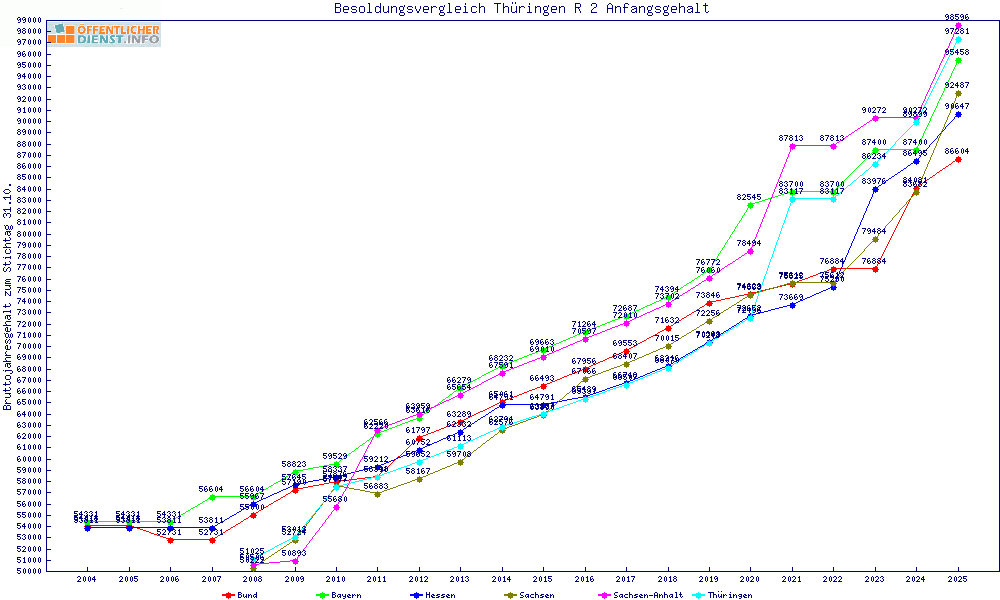 | Besoldungsvergleich R 2 im Jahr 2025 | Anfangsgehalt | ||||||
