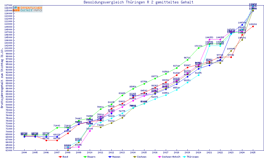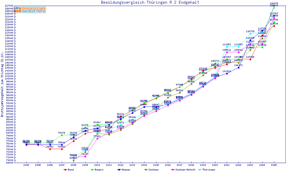 | Besoldungsvergleich R 2 im Jahr 2025 | gemitteltes Gehalt | ||||||