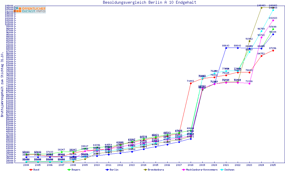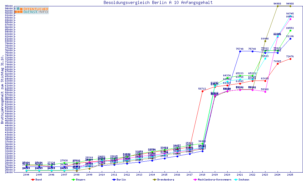 | Besoldungsvergleich A 10 im Jahr 2025 | Anfangsgehalt | ||||||