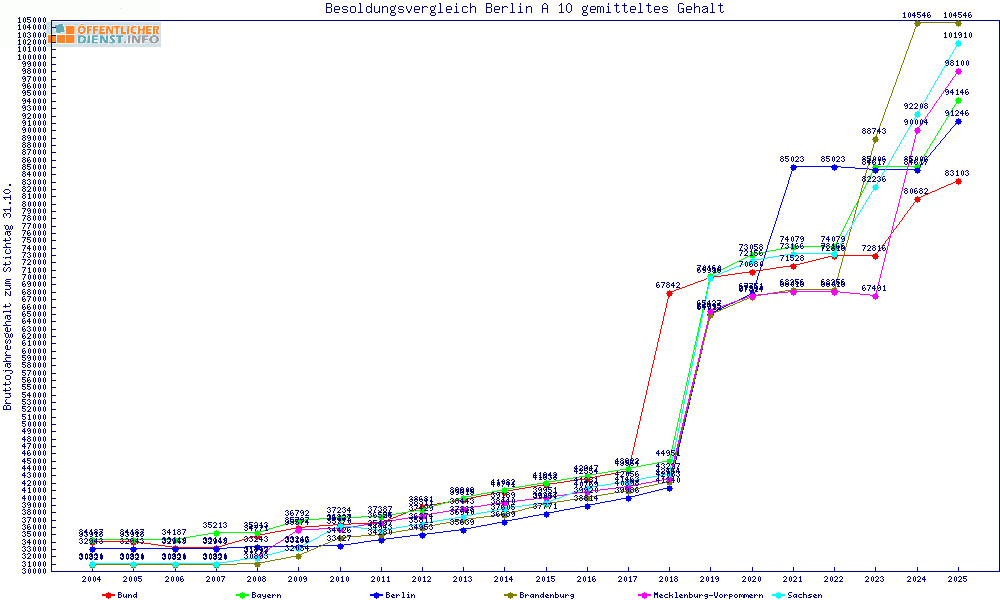 | Besoldungsvergleich A 10 im Jahr 2025 | gemitteltes Gehalt | ||||||