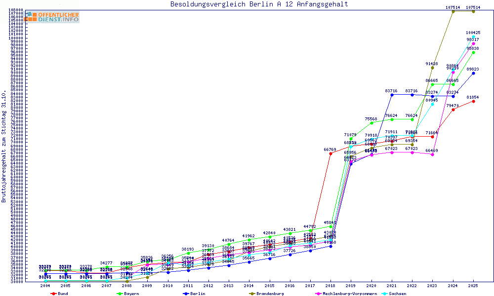 | Besoldungsvergleich A 12 im Jahr 2025 | Anfangsgehalt | ||||||