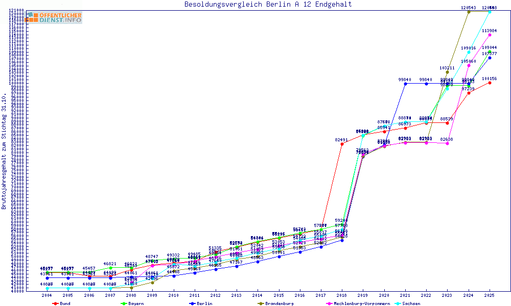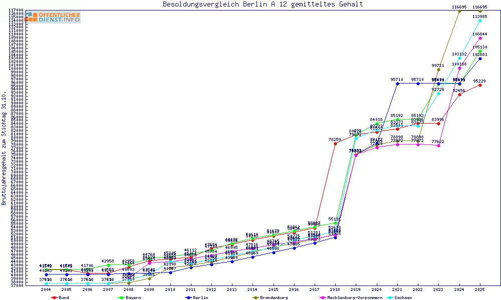 | Besoldungsvergleich A 12 im Jahr 2025 | gemitteltes Gehalt | ||||||