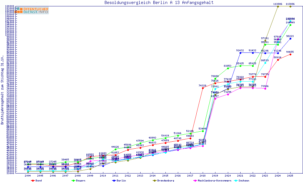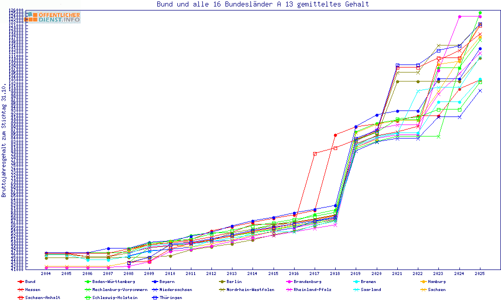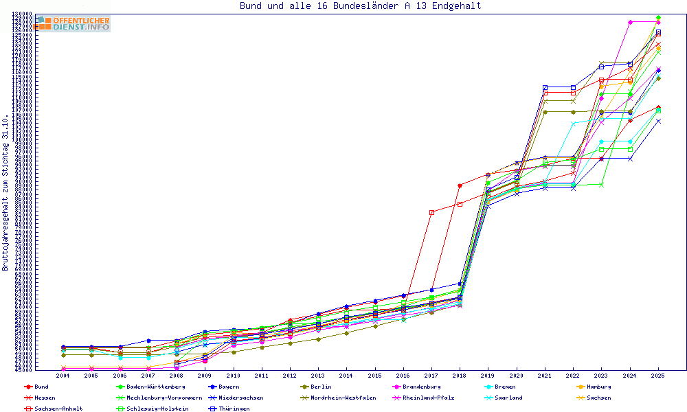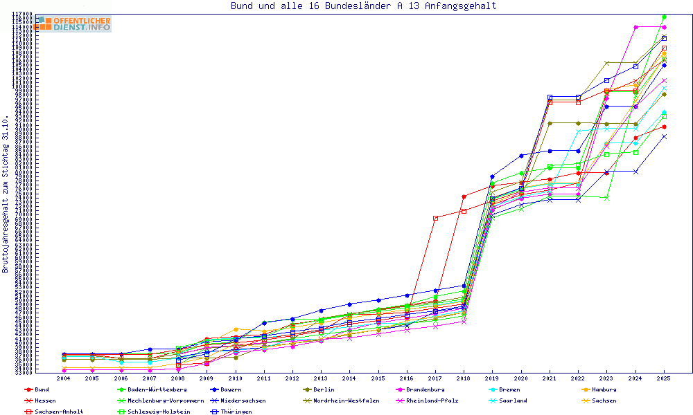| Besoldungsvergleich A 13 im Jahr 2025 | Anfangsgehalt | ||||||