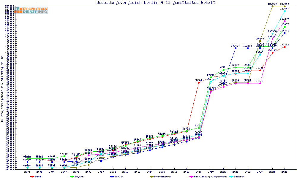 | Besoldungsvergleich A 13 im Jahr 2025 | gemitteltes Gehalt | ||||||