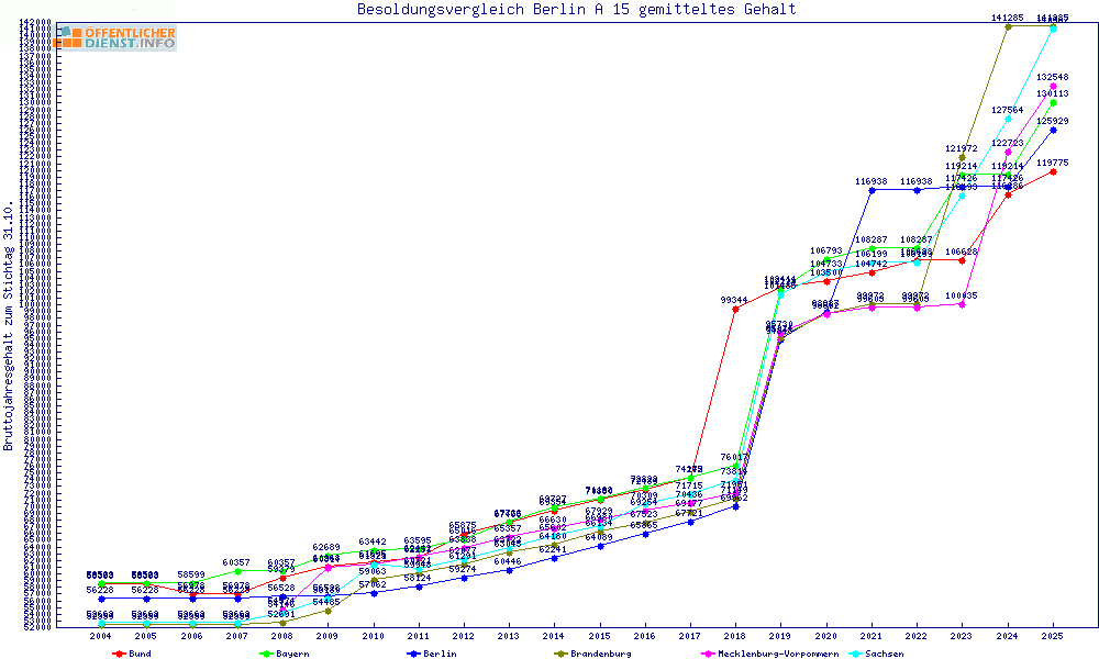 | Besoldungsvergleich A 15 im Jahr 2025 | gemitteltes Gehalt | ||||||