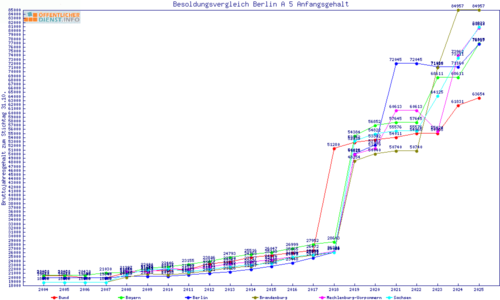 | Besoldungsvergleich A 5 im Jahr 2025 | Anfangsgehalt | ||||||