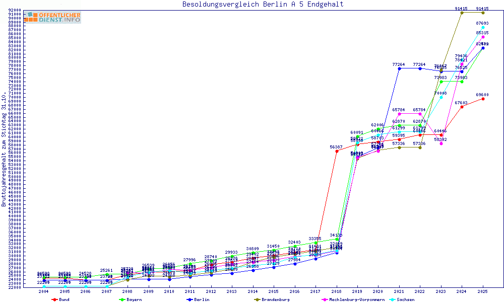 | Besoldungsvergleich A 5 im Jahr 2025 | Endgehalt | |||||||