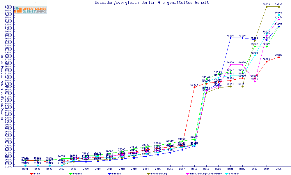 | Besoldungsvergleich A 5 im Jahr 2025 | gemitteltes Gehalt | ||||||