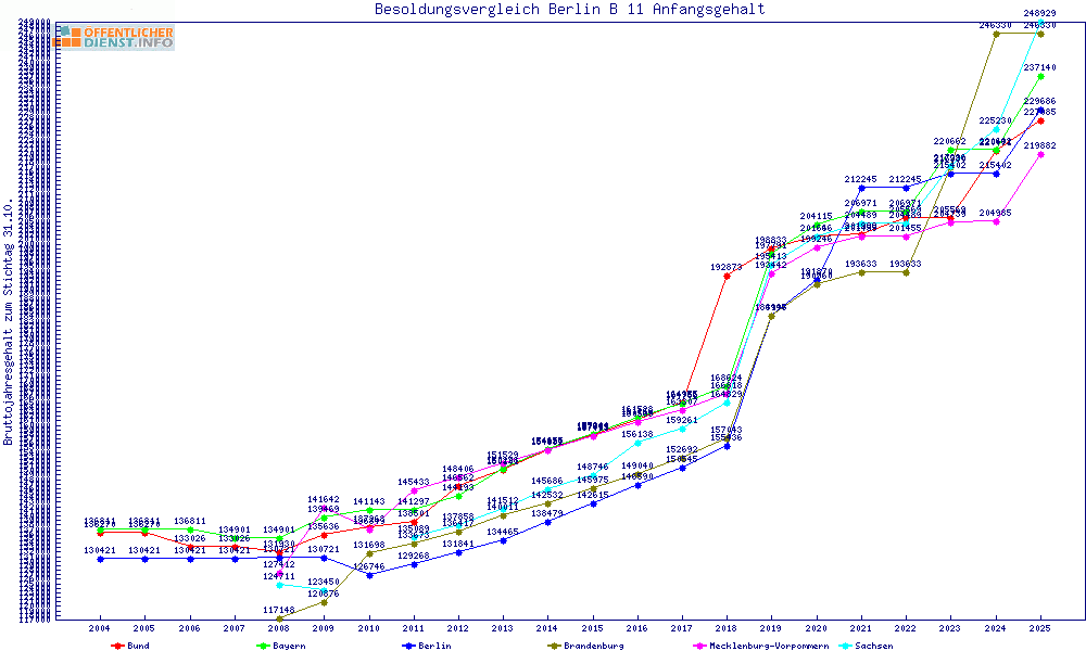 | Besoldungsvergleich B 11 im Jahr 2025 | Anfangsgehalt | ||||||
