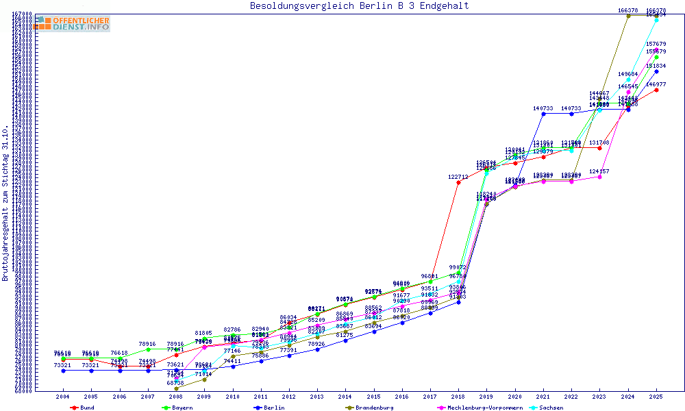 | Besoldungsvergleich B 3 im Jahr 2025 | gemitteltes Gehalt | ||||||