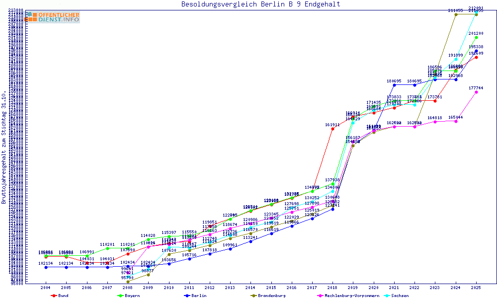 | Besoldungsvergleich B 9 im Jahr 2025 | gemitteltes Gehalt | ||||||