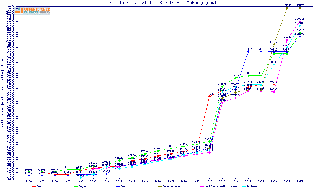 | Besoldungsvergleich R 1 im Jahr 2025 | Anfangsgehalt | ||||||