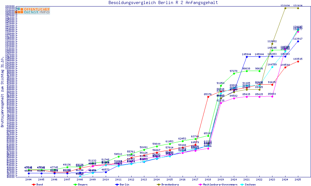 | Besoldungsvergleich R 2 im Jahr 2025 | Anfangsgehalt | ||||||