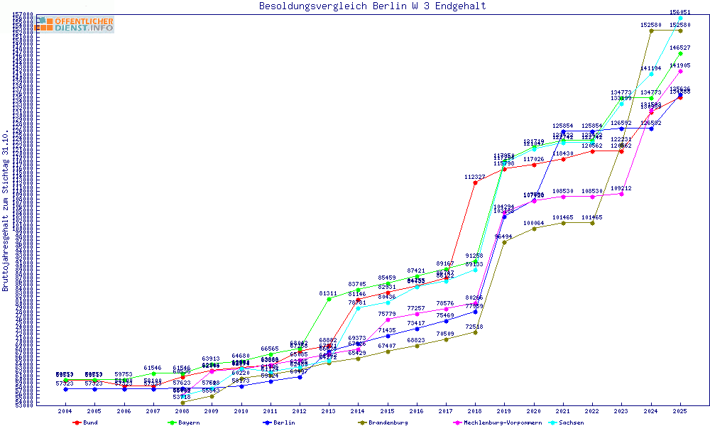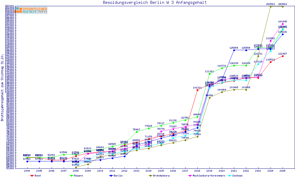 | Besoldungsvergleich W 3 im Jahr 2025 | Anfangsgehalt | ||||||