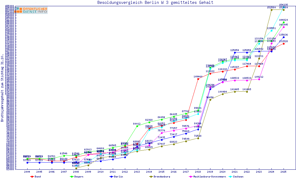| Besoldungsvergleich W 3 im Jahr 2025 | gemitteltes Gehalt | ||||||