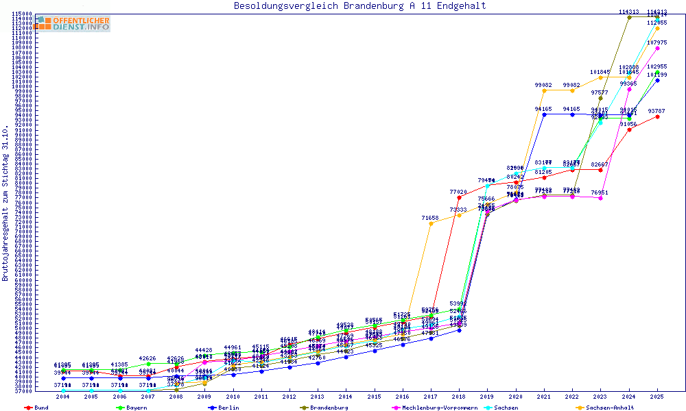 | Besoldungsvergleich A 11 im Jahr 2025 | Anfangsgehalt | ||||||