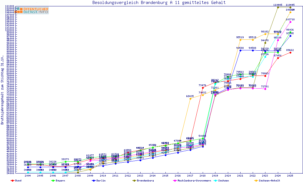 | Besoldungsvergleich A 11 im Jahr 2025 | gemitteltes Gehalt | ||||||
