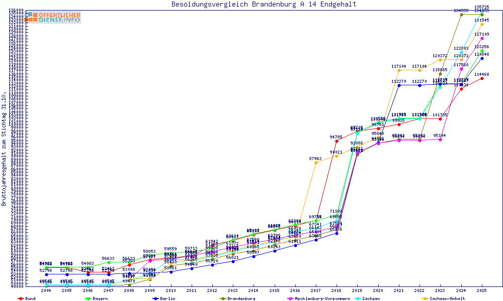 | Besoldungsvergleich A 14 im Jahr 2025 | Anfangsgehalt | ||||||