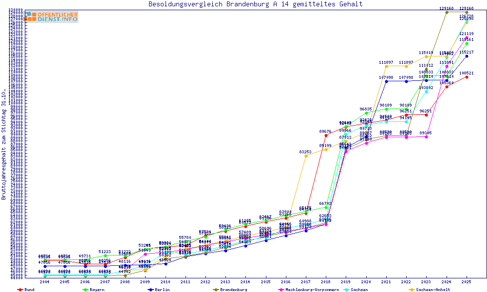 | Besoldungsvergleich A 14 im Jahr 2025 | gemitteltes Gehalt | ||||||