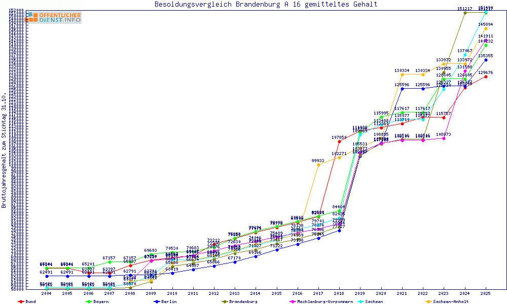 | Besoldungsvergleich A 16 im Jahr 2025 | gemitteltes Gehalt | ||||||